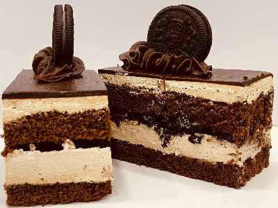 6 قطع من الشوكولاتة الغنية والرطبة بنكهة أوريو، ذات ملمس ناعم ورقيق.